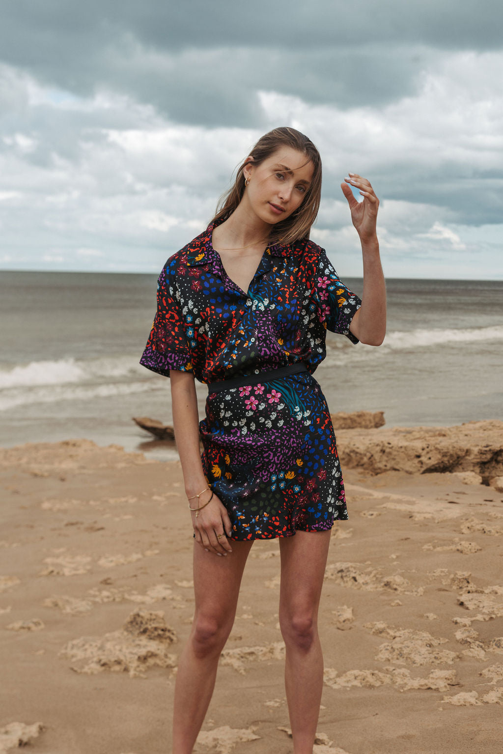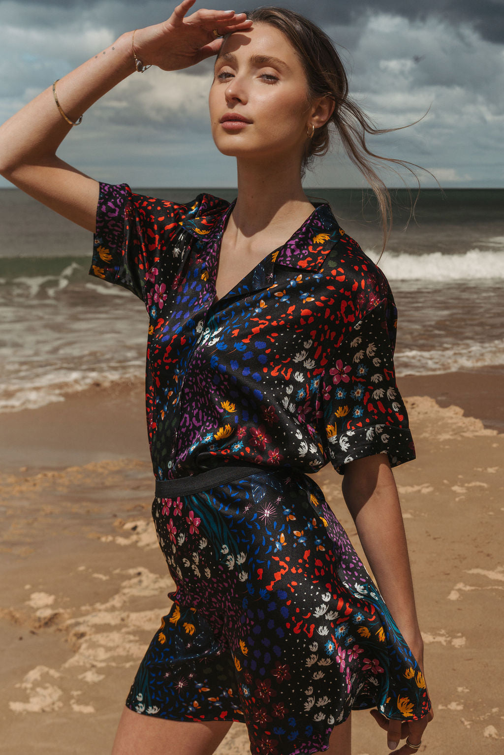 The Cloud Break shirt is a simple and elegant shape. It features short sleeves, a center button down front and folded fixed collar. The shirt is finished with internal French seams.